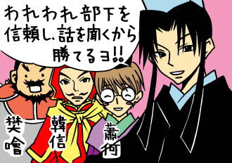 蕭: あ!隣に韓信どのがいる!!そういえば沛公が漢中に左遷された頃、彼は我が軍に